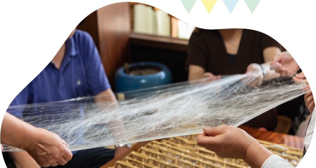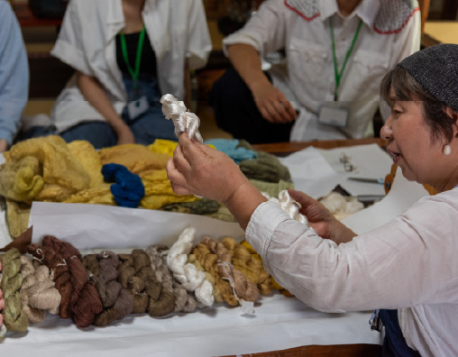 The quiet air of the undeveloped woodlands flows through the old-fashioned house as the clear morning light streams in. Here, you will find a moment to experience how silkworms change life into thread. Oriwori features a wide variety of workshops including fresh face lotion making using the moisturizing ingredient sericin extracted raw cocoons, silk floss making, sericulture work, and dyeing using plants and indigo. All these experiences are held in small groups, offering a relaxed atmosphere where you can learn at your own pace. Your trip will be filled with wonderful memories of this special time where you can experience the entire process from the birth of the silk to when it takes on shape as a fabric, all with your own hands.